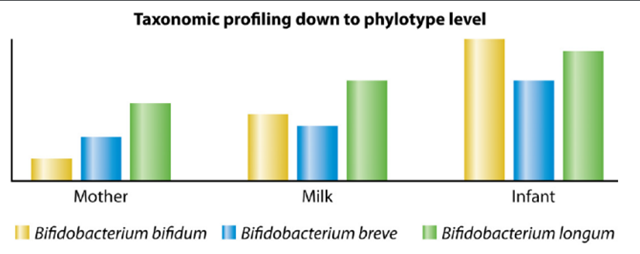 Un'analisi su più di 400 coppie madre-neonato ha evidenziato la presenza costante di alcune specie batteriche comuni, tra cui Proteobacteria e Bifidobacteria, in entrambe le popolazioni, suggerendo la loro importanza nell’instaurarsi della microflora neonatale. In particolare, i Bifidobacteria rappresentano oltre il 50% del microbiota intestinale neonatale, con specie come Bifidobacterium breve, Bifidobacterium longum e Bifidobacterium bifidum che sono frequentemente riscontrate sia nel microbiota materno che in quello neonatale.