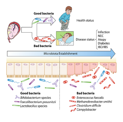 Questo processo di trasmissione avviene in vari modi: tramite il passaggio di microrganismi attraverso la placenta, il parto (vaginale o cesareo) e l’allattamento.