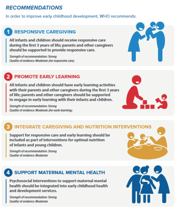 Non a caso i primi due punti delle Linee guida dell'OMS relative al Miglioramento dello sviluppo della prima infanzia sono: